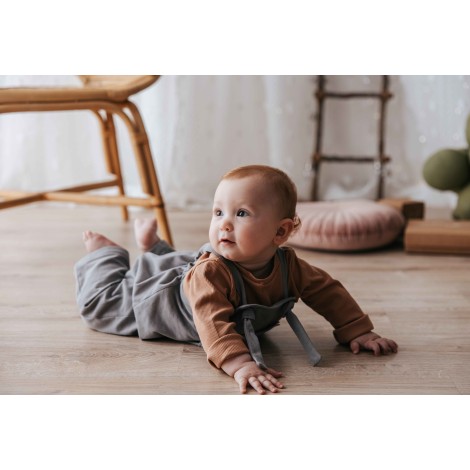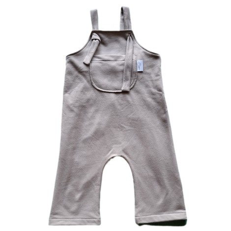 Salopette Unisex in caldo cotone bio leggermente felpato all'interno, con bretelle che passano su due asole davanti e allacciano con nodo, permettendo alla salopette di seguire l'altezza della bimba/o durante la crescita.