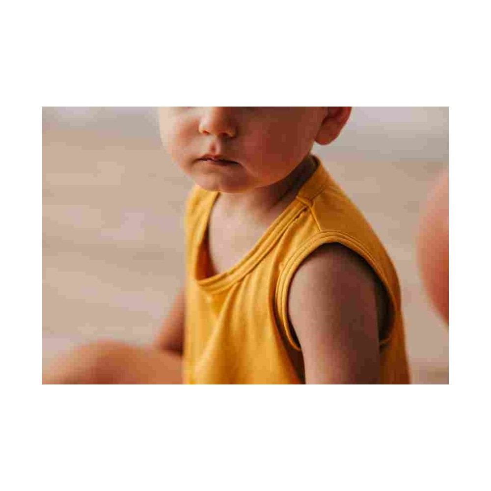 Canotta Unisex in bamboo. Nata come intimo per i più piccoli, è ideale anche di giorno in primavera come in estate.